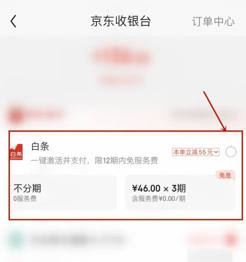 4、最后,确认好各项信息无误,点击支付,在京东收银台页面,选择【白条】支付,选择分期期数后支付即可。