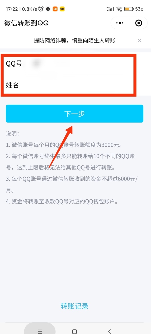 第七:就是我们输入对方的qq号,以及收款人的姓名。