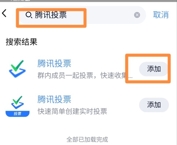 步骤5、搜索腾讯投票,点击添加腾讯投票应用。