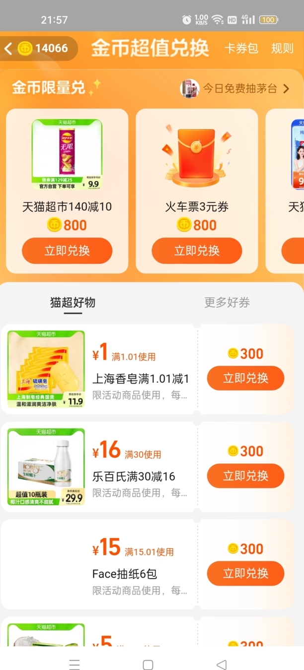 4、积攒了足够多的淘金币后,我们就可以用它们来兑换我们需要的各种东西了。可以兑红包,兑各种优惠券,这就相当于钱了,付款时少付一点是一点。话说骑自行车去酒吧,该省省该花花😀