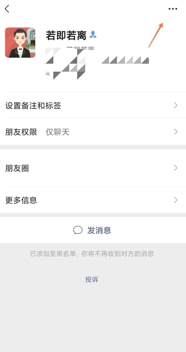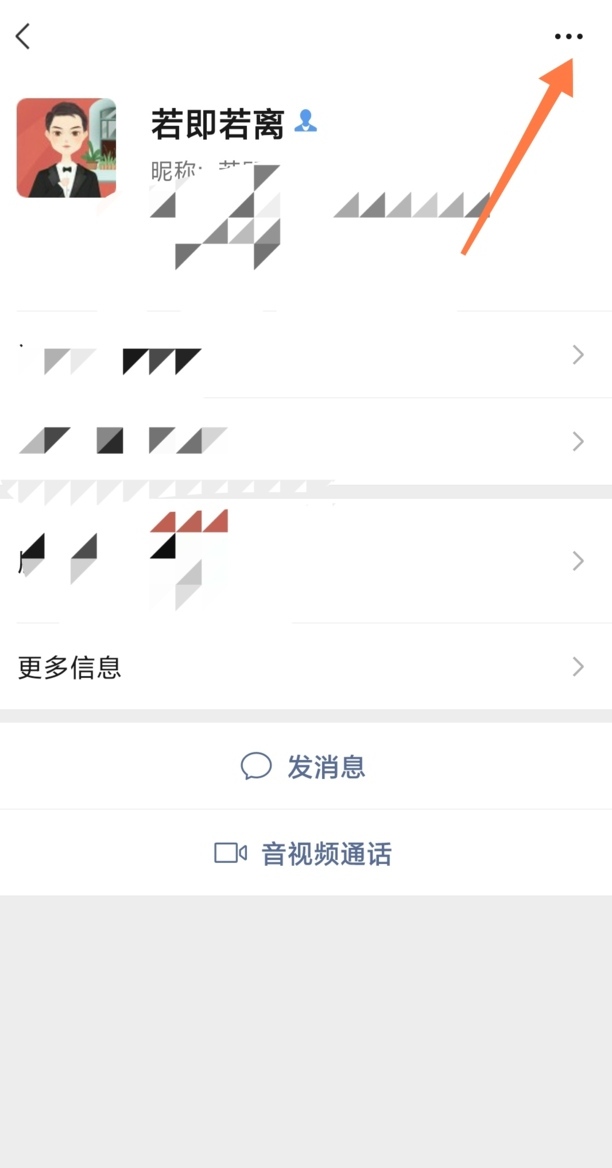 第一:点击进入微信,在微信里面找到你要隐藏而不是拉黑的好友,进入后点击右上角的三个点。