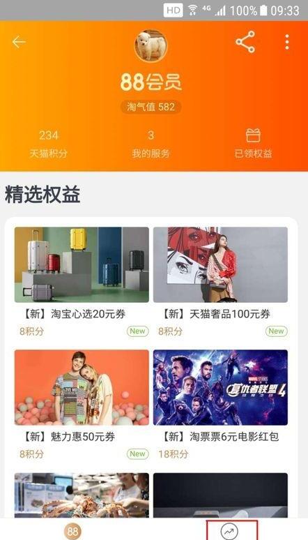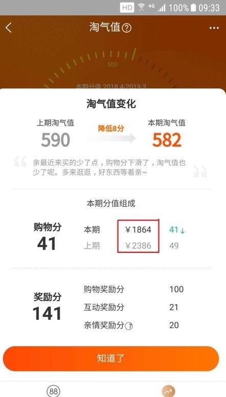 5、 在这里有一个金钱的符号标志,后面的数值就是以年度为单位的淘宝所有消费总额。
