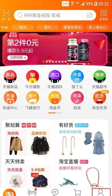 第二:打开淘宝首页后,点击并进入右下角的我的淘宝选项。