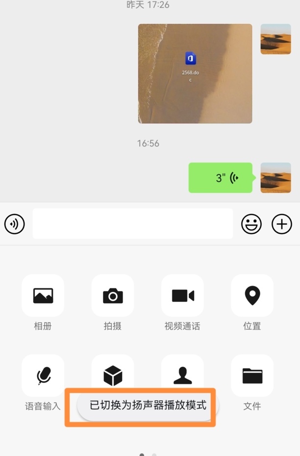 5、再次长按语音,又可以选择切换回听筒播放模式。