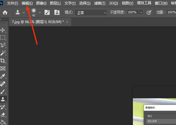 步骤4、方法三:在ps中找到并点击顶部的编辑,如下图所示: