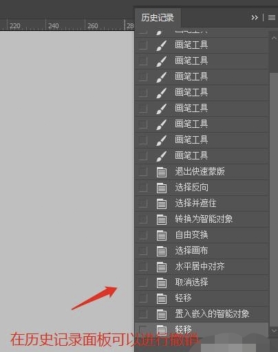 步骤2、在历史记录面板可以进行撤销,想撤销到哪一步就点击哪个;如下图所示: