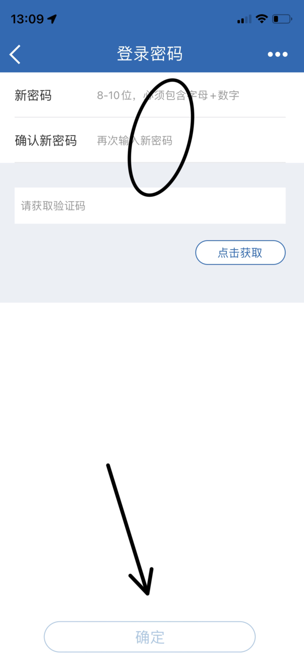 2、设置新的登陆密码,输入手机验证码,然后点击确认即可。
