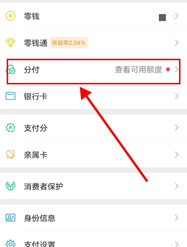 3、在钱包页面,便可以直接看到“分付”入口,点击进入;