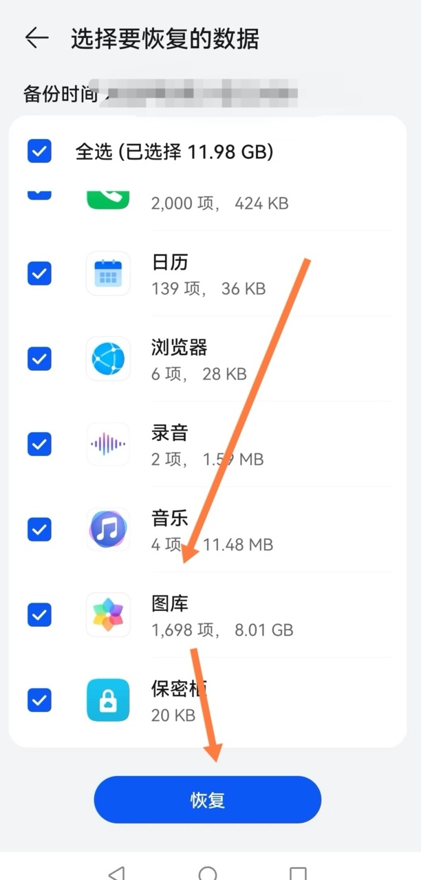第六:选择要恢复的照片,选好后点击恢复就好了。