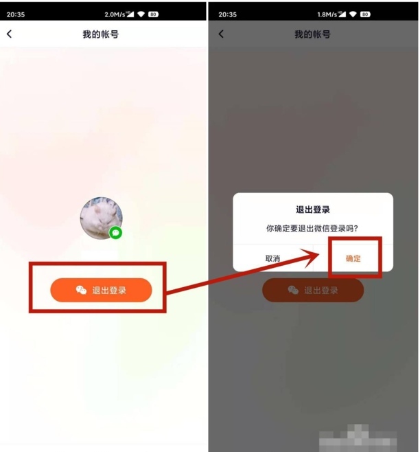 2、点击退出登录,在弹出的小框中点击确定。
