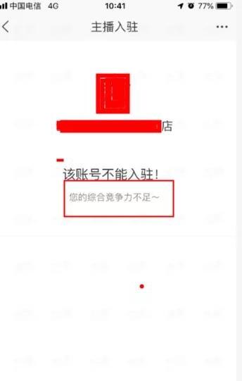 若提示该账号不能入驻您的综合竞争力不足,则说明您店铺的综合数据不符合直播要求,目前无法开通。