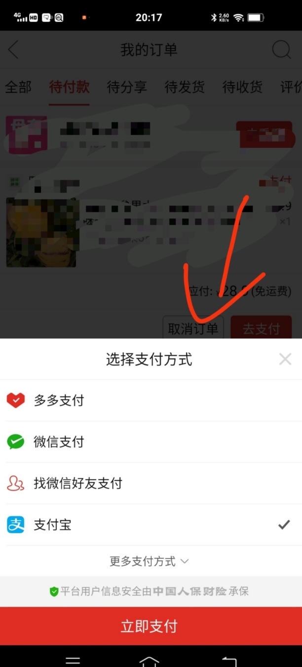 4.点开去支付过后就会出现四种支付方式,任意选一种就可以了,然后点立即支付