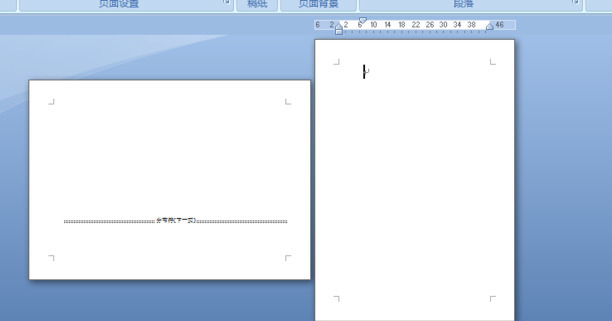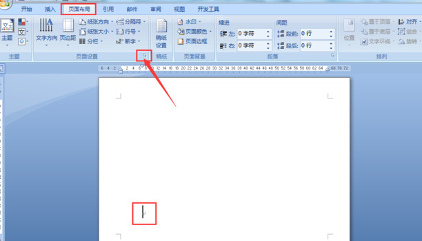 3、将光标放到空白页的底部,在“页面布局”中,“页面设置”的下拉箭头。