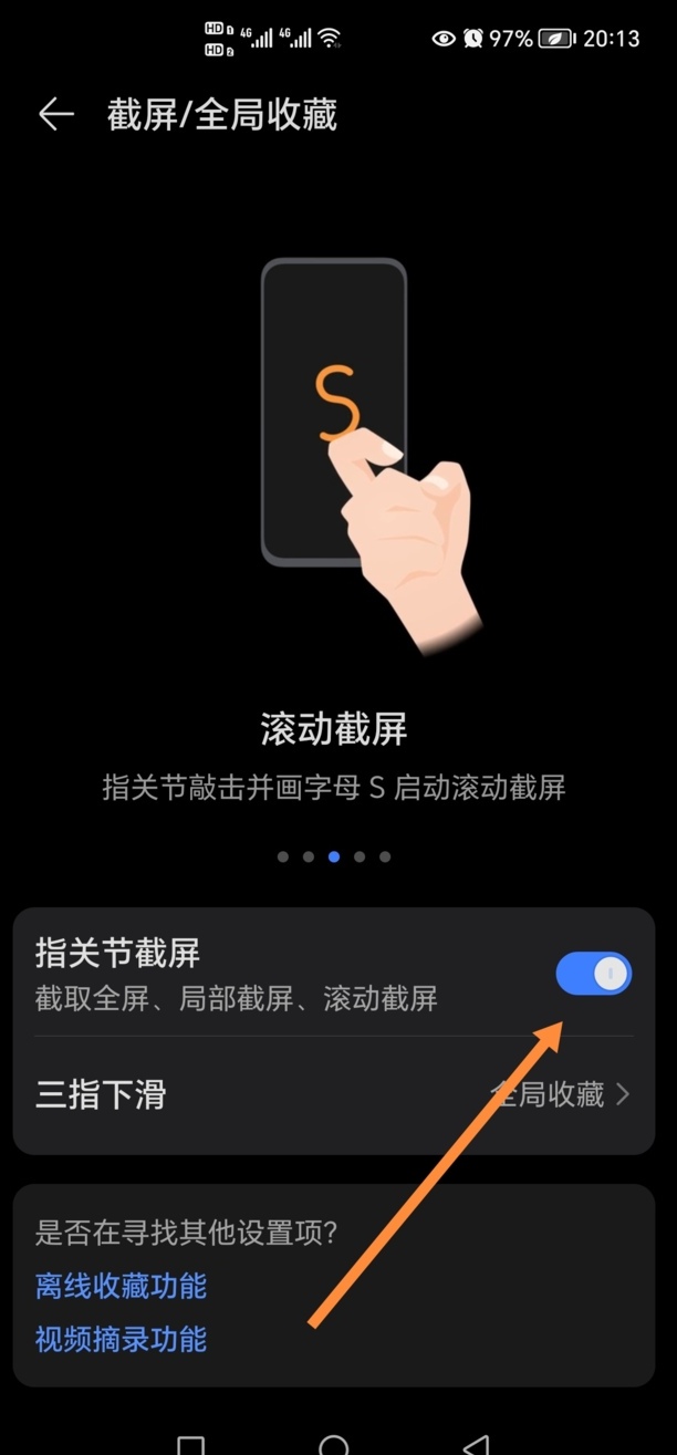 5、然后打开微信聊天页面,用指关节在页面上画s,启动滚动截屏,然后再点击桌面结束滚动截屏。
