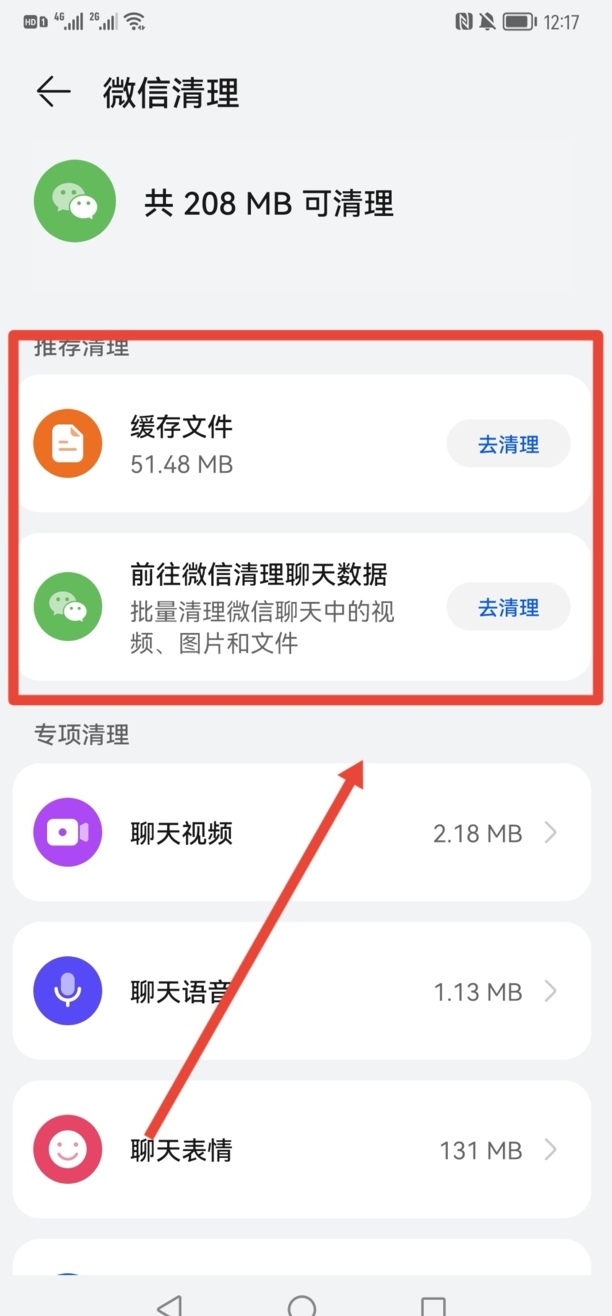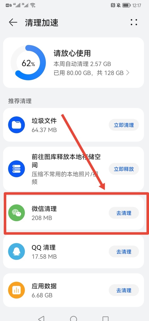 3、点【微信清理】