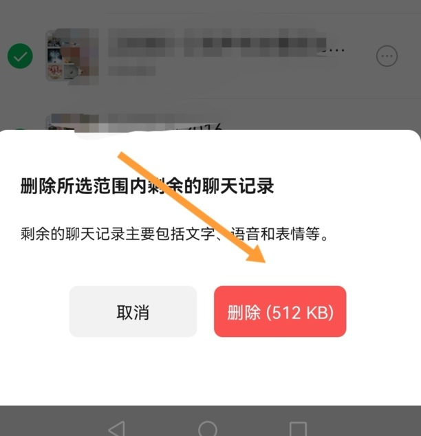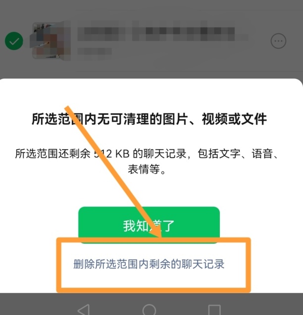 8、点删除所选范围内剩余的聊天记录