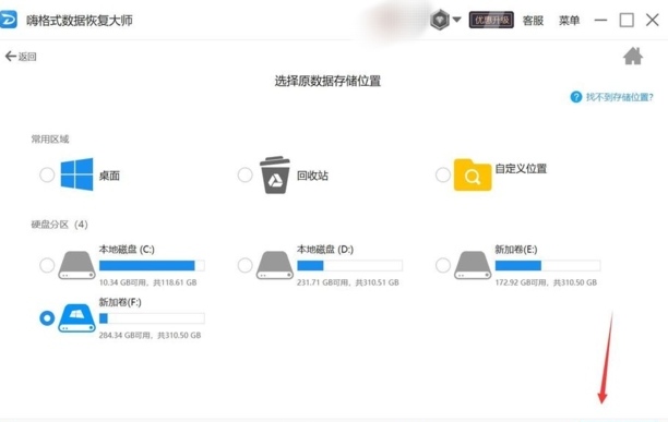 2、接下来选择原数据的存储位置后,点击“开始扫描”按钮。