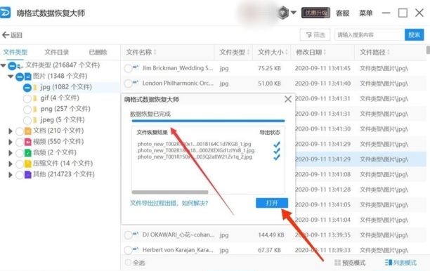 5、最终等待qq收藏照片文件恢复完成之后,点击打开按钮即可。