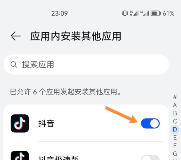 4、允许抖音在应用内安装其他应用,就开启了抖音的下载功能。