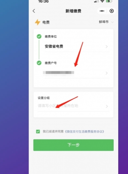 步骤4、在新增缴费界面,输入缴费户号并设置分组。