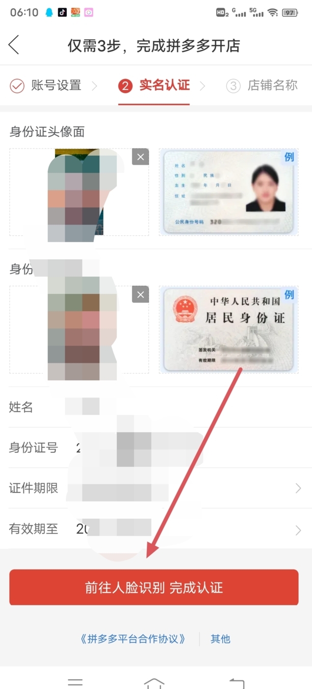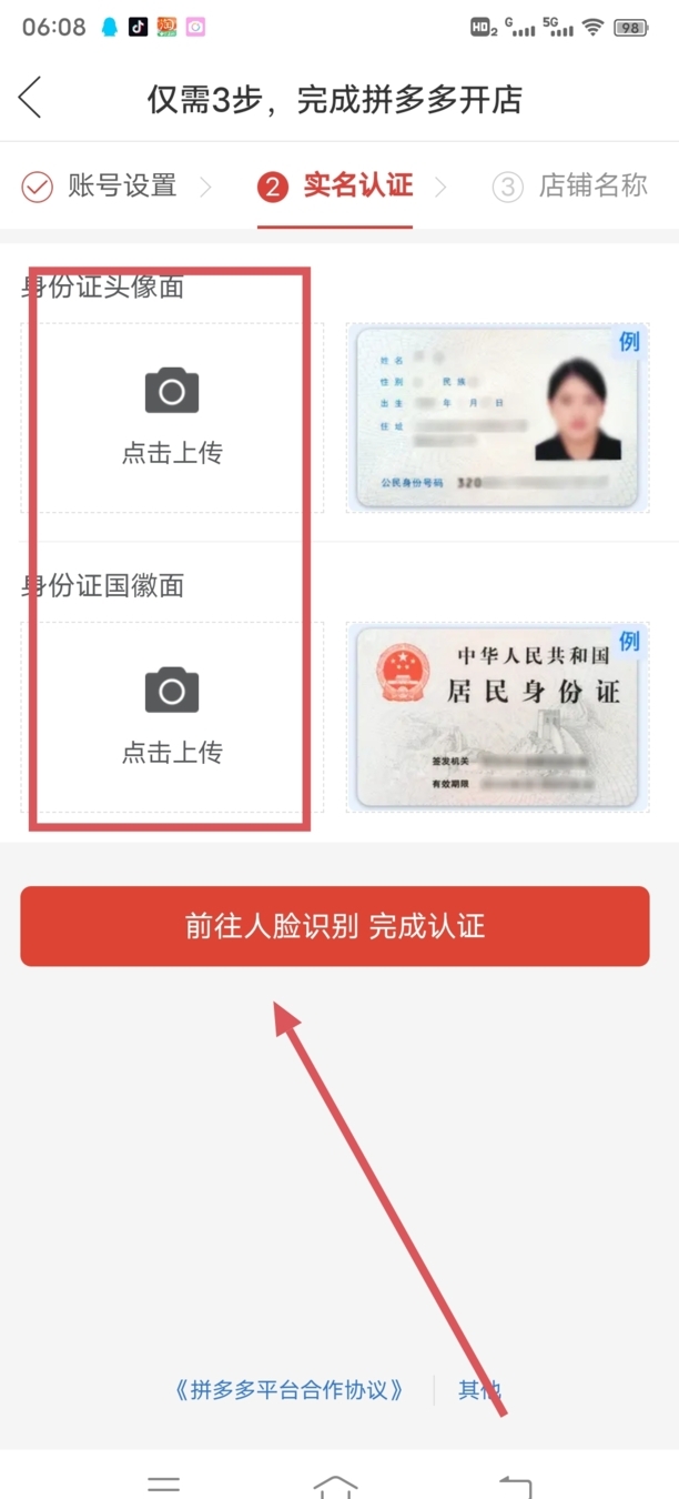 第五:上传自己的身份证正反面照片,最后点击进行人脸验证,验证成功即可。