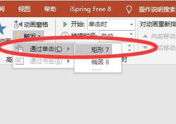 第四:在单击下拉菜单中根据需要选择触发的对象,例如选择“矩形7”。