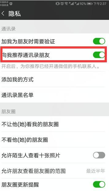 4、在隐私中,找到“向我推荐通讯录朋友”这个选项