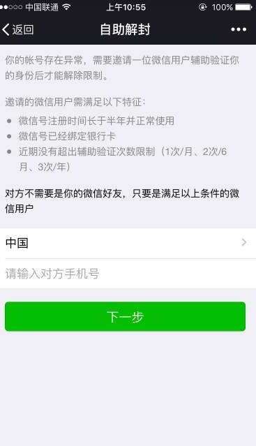 3、微信号6个月内没有为超过2位微信号做过辅助,1年内只能做三次解封。