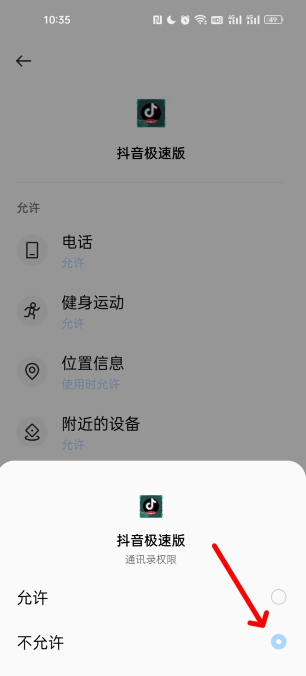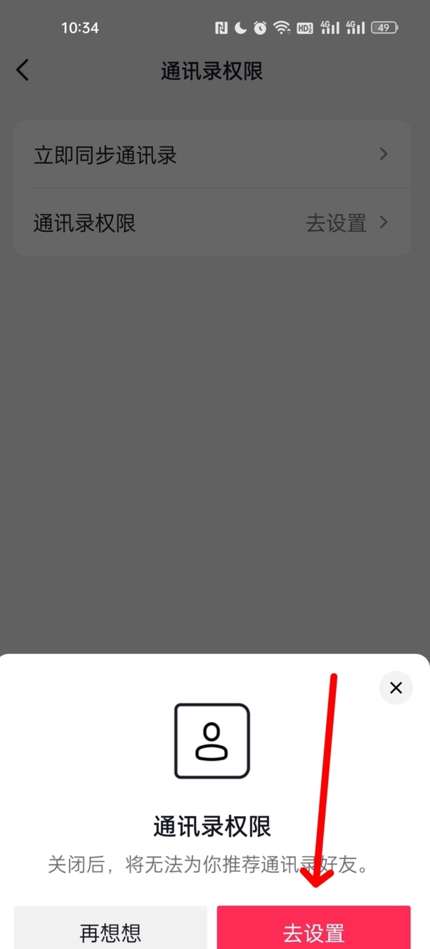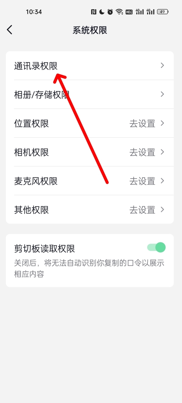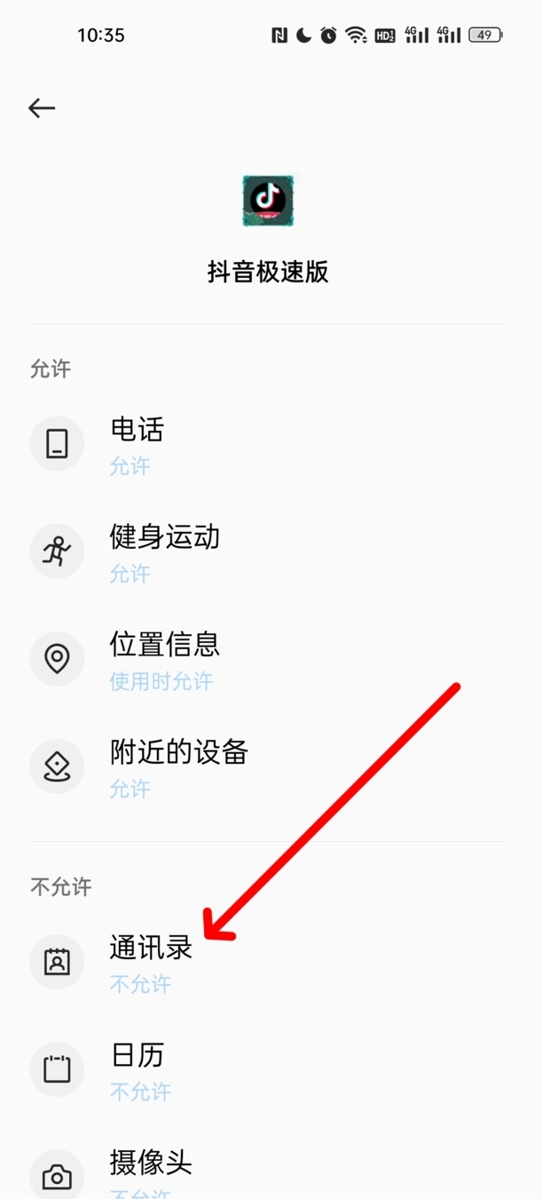 第四:进去手机设置抖音权限界面之后,将通讯录关闭掉;