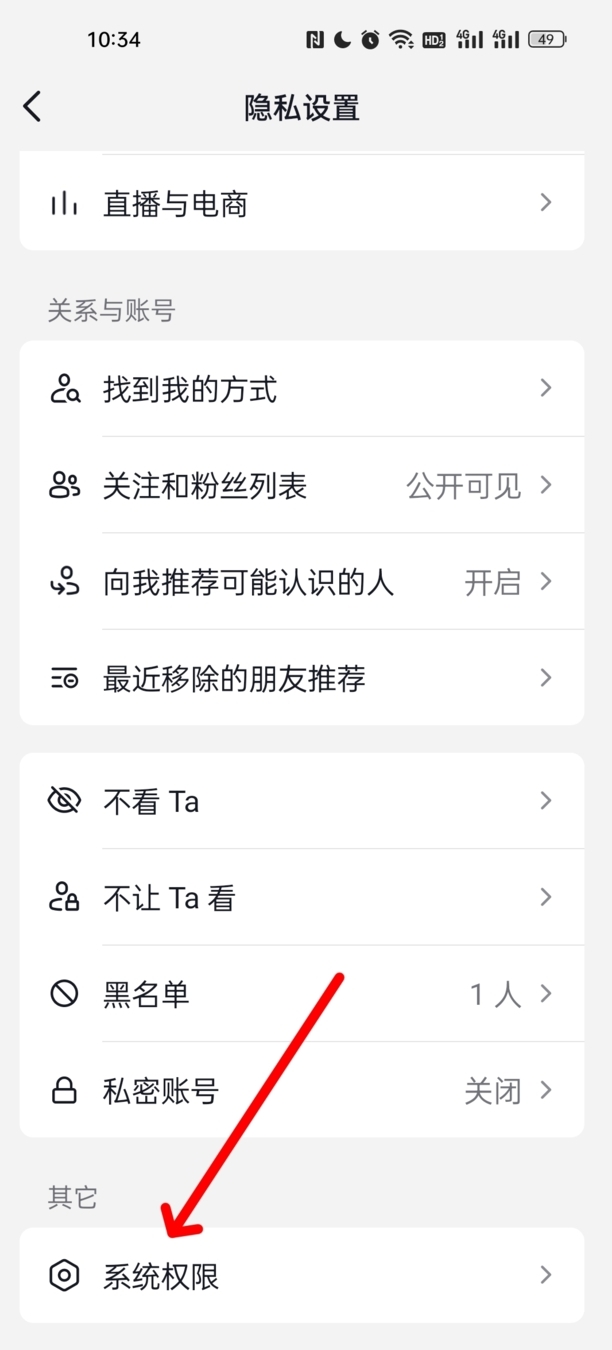 第五:除了关闭通讯录权限,我们也可以将抖音的允许推荐好友关闭掉,设置-隐私设置中。