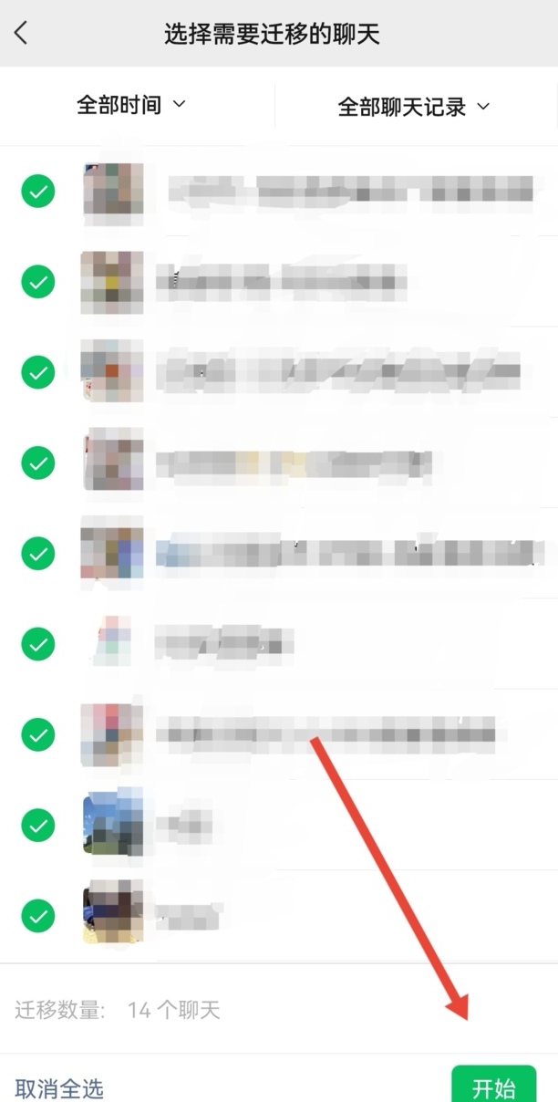 第五:在接下来选择需要迁移的聊天记录,然后点击完成