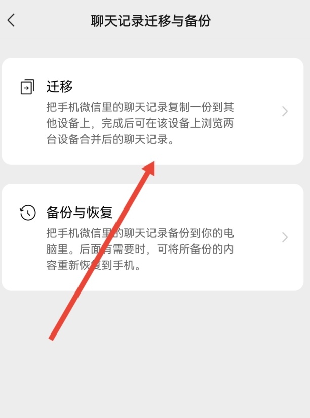 第四:然后可以看到最下面有聊天记录迁移的功能,点击