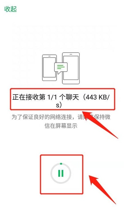 10、使用“扫一扫”功能扫描第一台设备生成的二维码,然后就会进入聊天记录迁移流程。