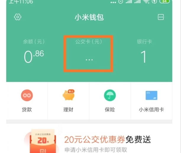 第二:去小米钱包里设置相应的NFC功能了。打开小米钱包,在界面顶部即可看见钱包余额、公交卡余额、银行卡等相应的信息。