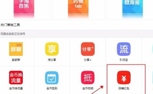 3、在 --热门营销工具 --就可以到找--店铺红包--;