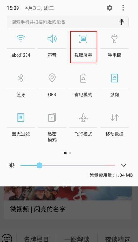 3、下拉屏幕上方的菜单栏,点击“截取屏幕”按钮,听到“咔嚓”一声(没有声效可以看到图片一闪),表示截屏成功。