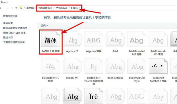 步骤2、、然后进入“C:Windows”位置,打开其中的“fonts”文件夹。