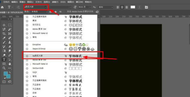 第八:最后就可以看到改字体已经添加到了ps字体中了。