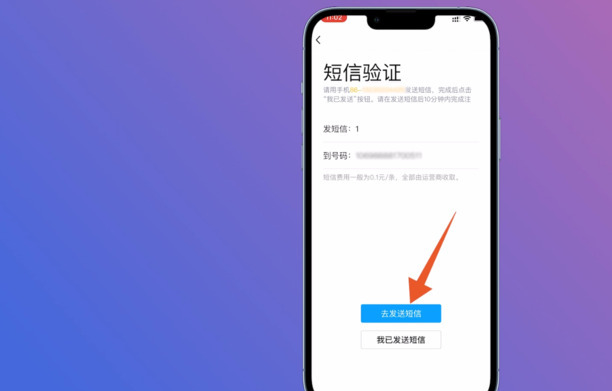 7、在短信验证的页面中,找到下方的去发送短信,点击它。