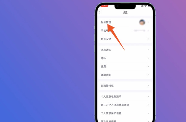 3、进入到设置的页面后,通过点击页面顶部的帐号管理,进入新页面。