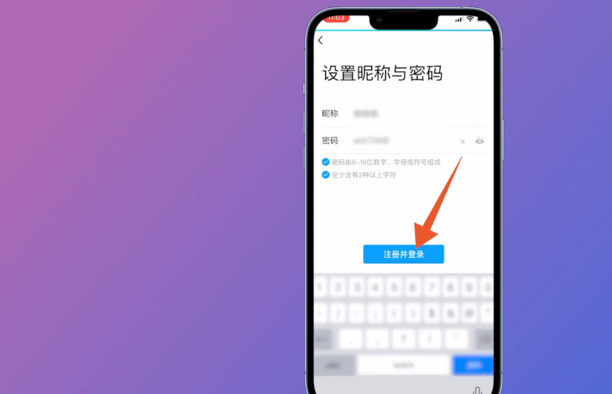 8、短信发送成功后,填写昵称和密码,点击注册并登录,即可创小号了。