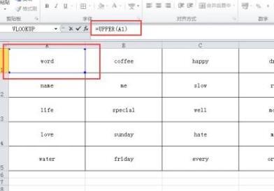 2、此刻,我们单击任意空白处,输入公式:=UPPER(A1)。AI就是“word”这个单位格,