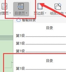 2、在下一行工具栏中选择目录页。按自己的需求选择想要的目录层级。