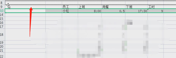 1打开excel,点击一行左侧的数字选中行,把鼠标指针放在单元格顶部框线上,按住鼠标左键向上拖