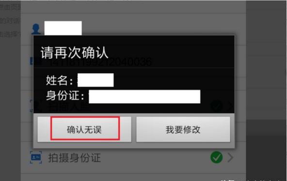 4.短信验证码校验通过之后,就需要在激活页面中,点击输入个人的姓名和身份证号码信息,然后准备扫描脸部以及拍摄身份证照片。