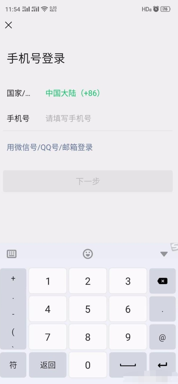 1、打开微信app,进入登陆界面,输入手机号后,获取验证码或输入密码后登录。