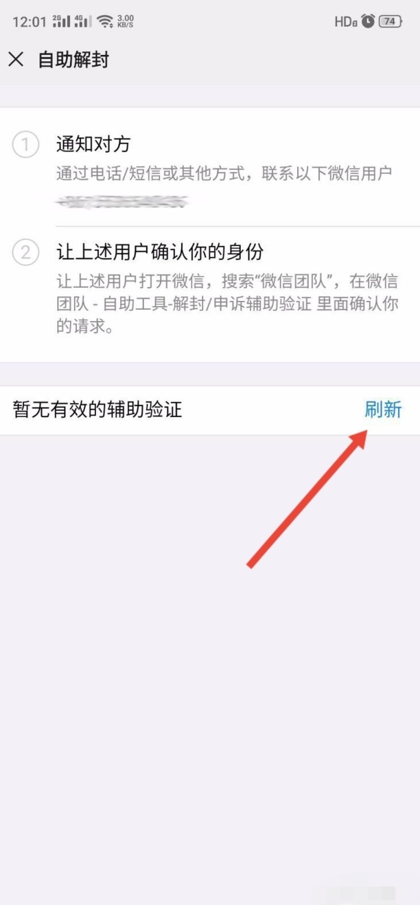 5、当我们打电话通知好友,让好友辅助解封就可以了,一定要刷新一次。