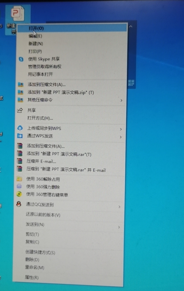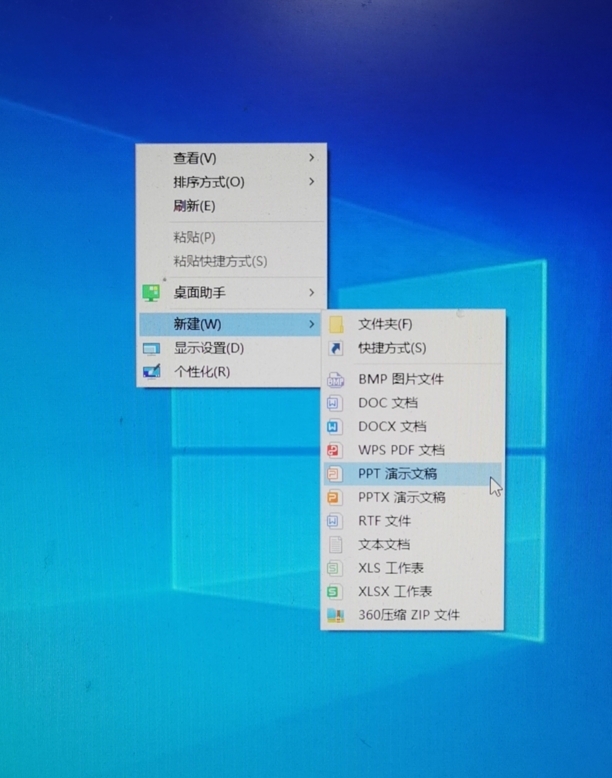 1、打开电脑,在页面右击鼠标,点击新建,点击PPT演示稿