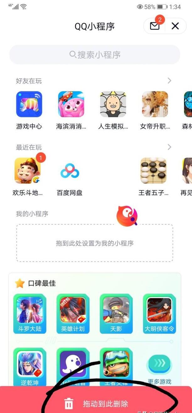 选择想要关闭的小程序,按住小程序,就会出现【删除】选项。