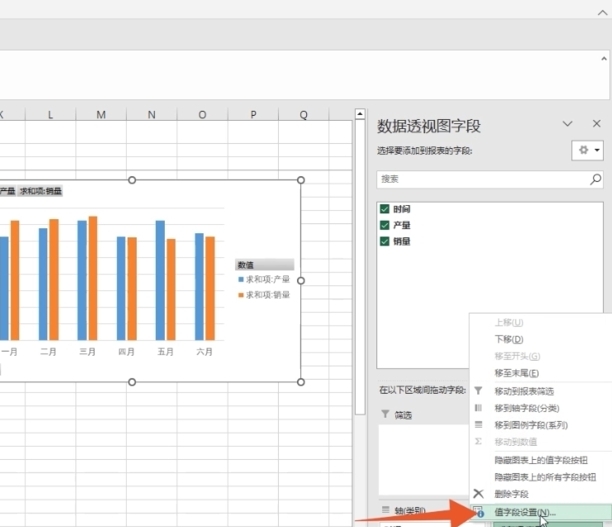 步骤5、在 “值”窗口中选择字段,点击值字段设置选项。
